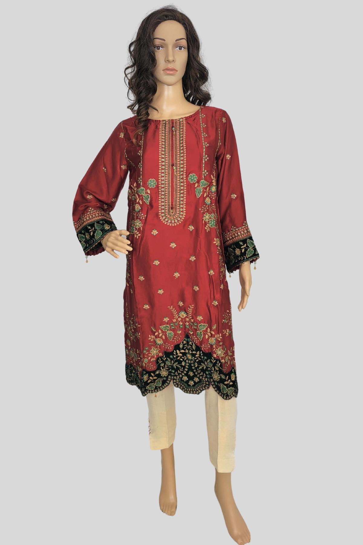 Shirt: Silk Shirt With full Embroidery Tilla, Lace and Beads work