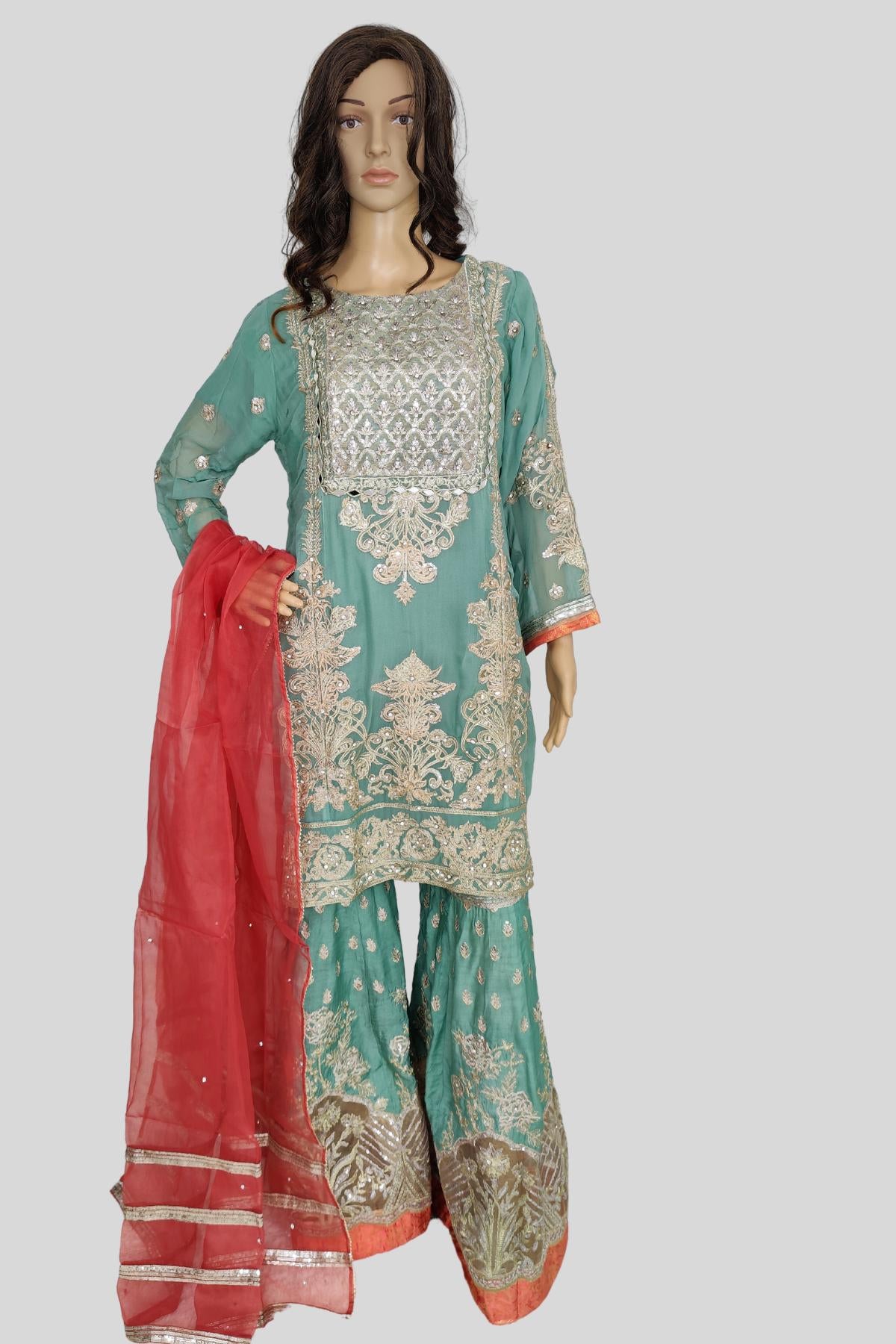 Shirt: Soft Chiffon Shirt With full Embroidery Tilla, sequin, pearl, Mirror and stone beads work