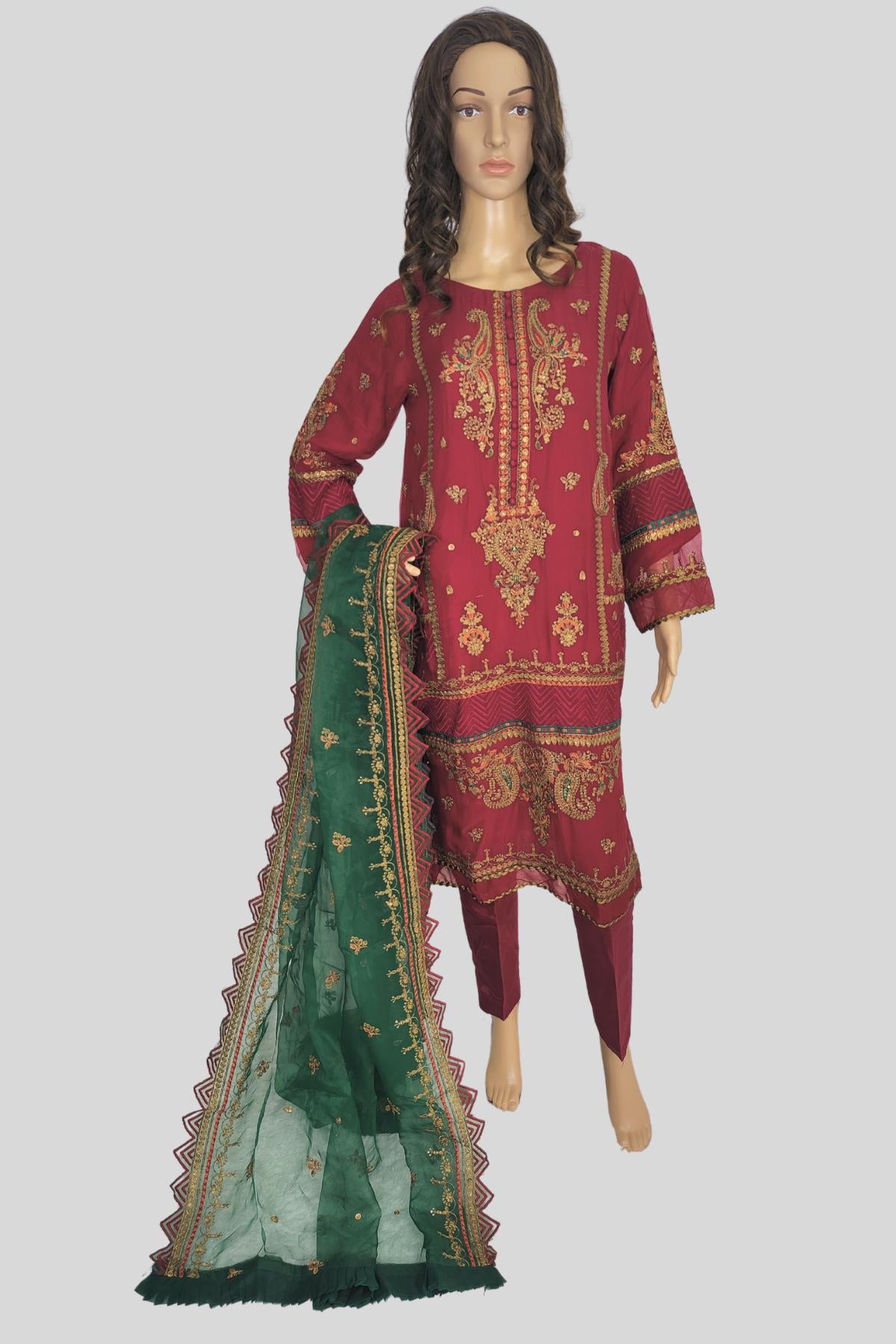Dupatta: Soft Organza Dupatta With Full embroidery & Lace Work