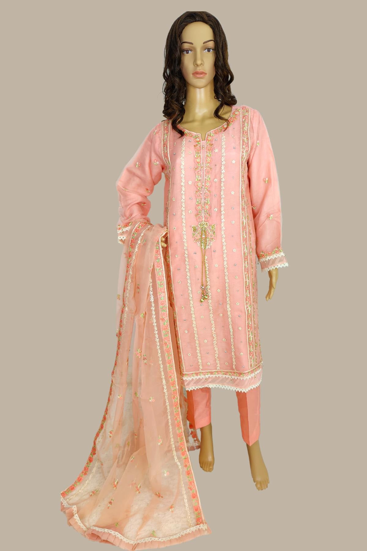 Dupatta: Soft Organza Dupatta With Full embroidery & Lace Work
